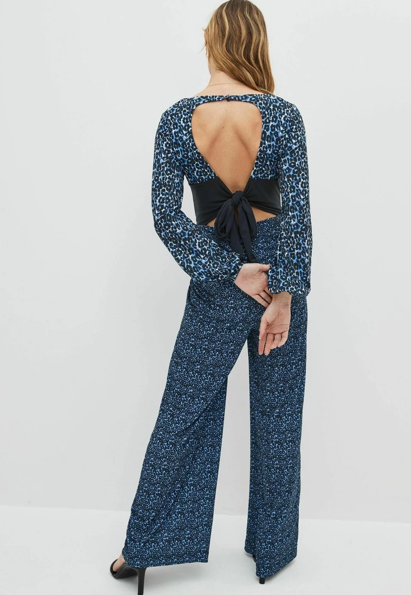 Next LONG SLEEVE BOW BACK – Jumpsuit – Blue Leopard Print